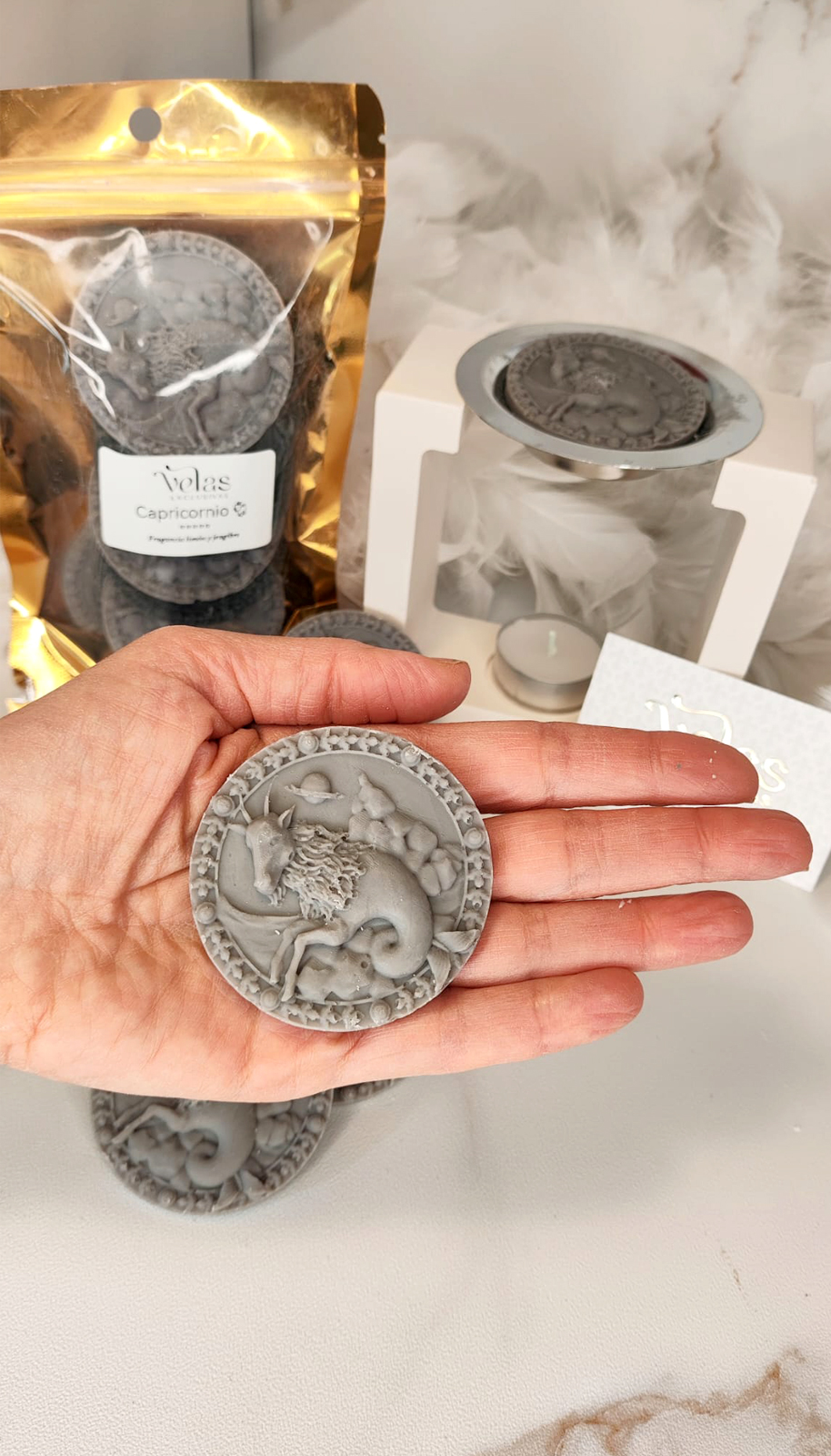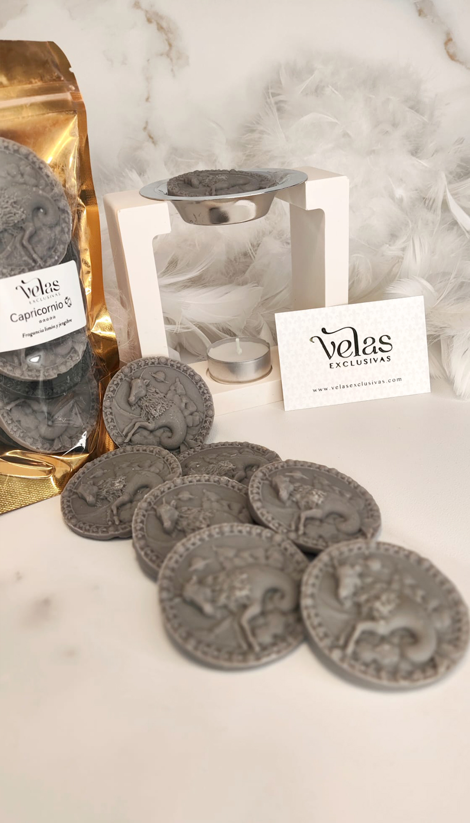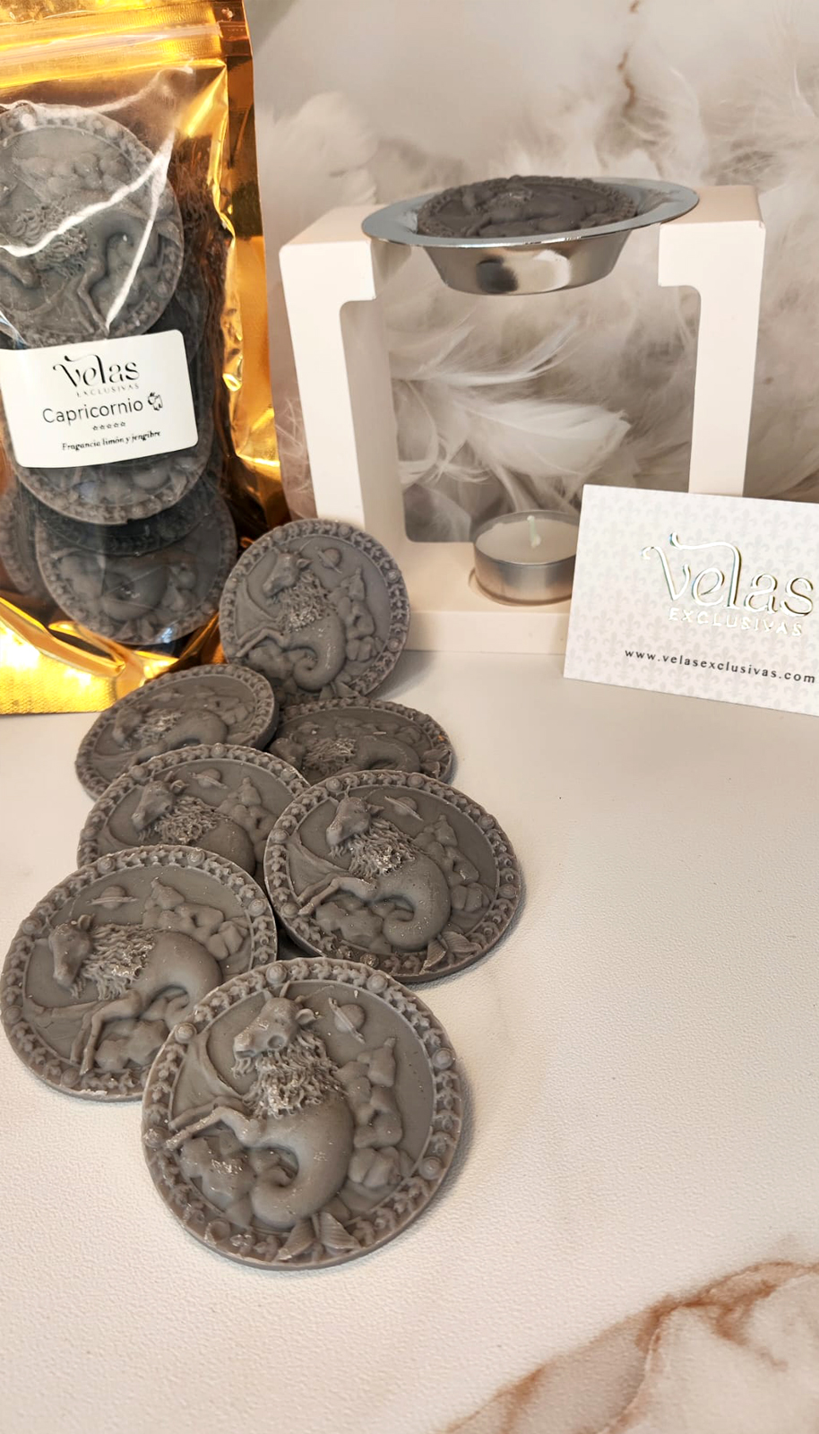 “Saca tu medallón de cera aromatizada (wax melt) de su bolsa impermeable y colócalo en la parte superior de tu quemador. Enciende una pequeña vela debajo y deja que la cera se funda lentamente. Su aroma llenará tu espacio de energía y bienestar.”