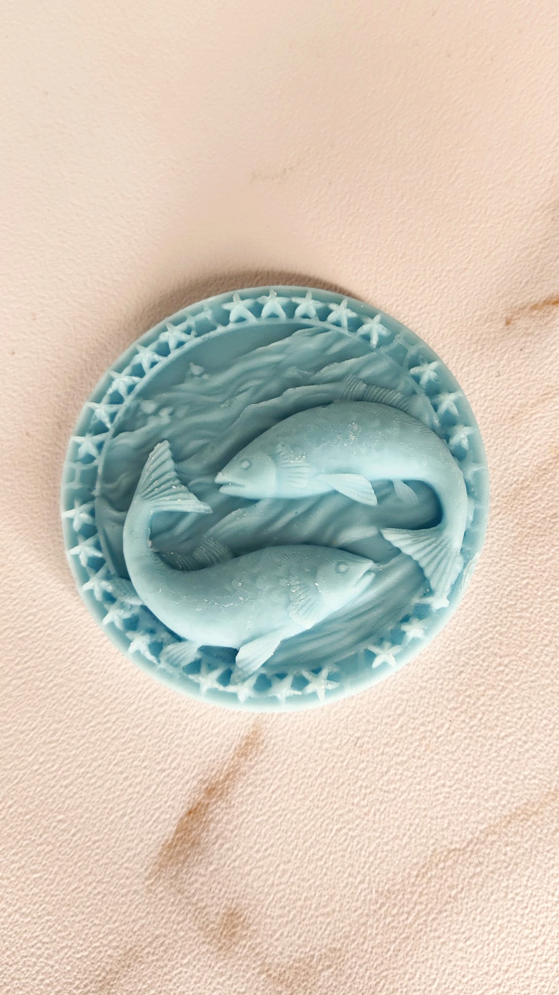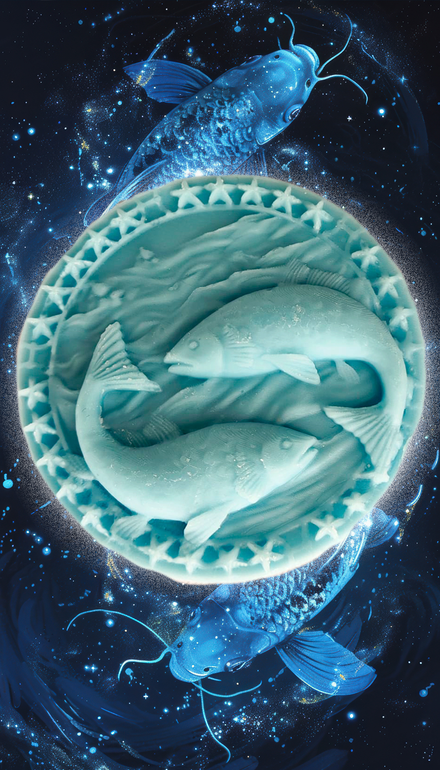 Elemento Agua: el azul representa el océano, la profundidad emocional y la sensibilidad que caracterizan a Piscis.