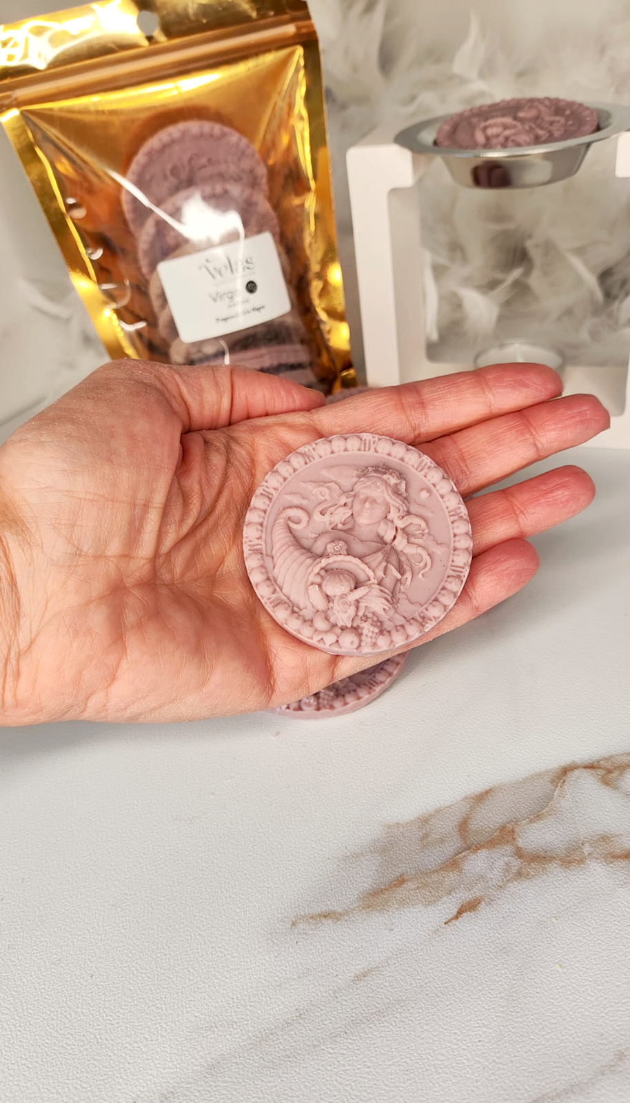 Pastillas de cera aromática – VIRGO es solo un perfume fuerte; es una composición equilibrada que comienza con la limpieza de los cítricos (Bergamota y Mandarina), se profundiza con notas de tierra y pureza (Cedro, Pachulí, Jazmín) y finaliza con la calidez y el confort de la vainilla y el sándalo.