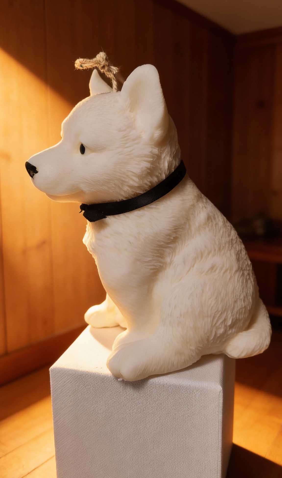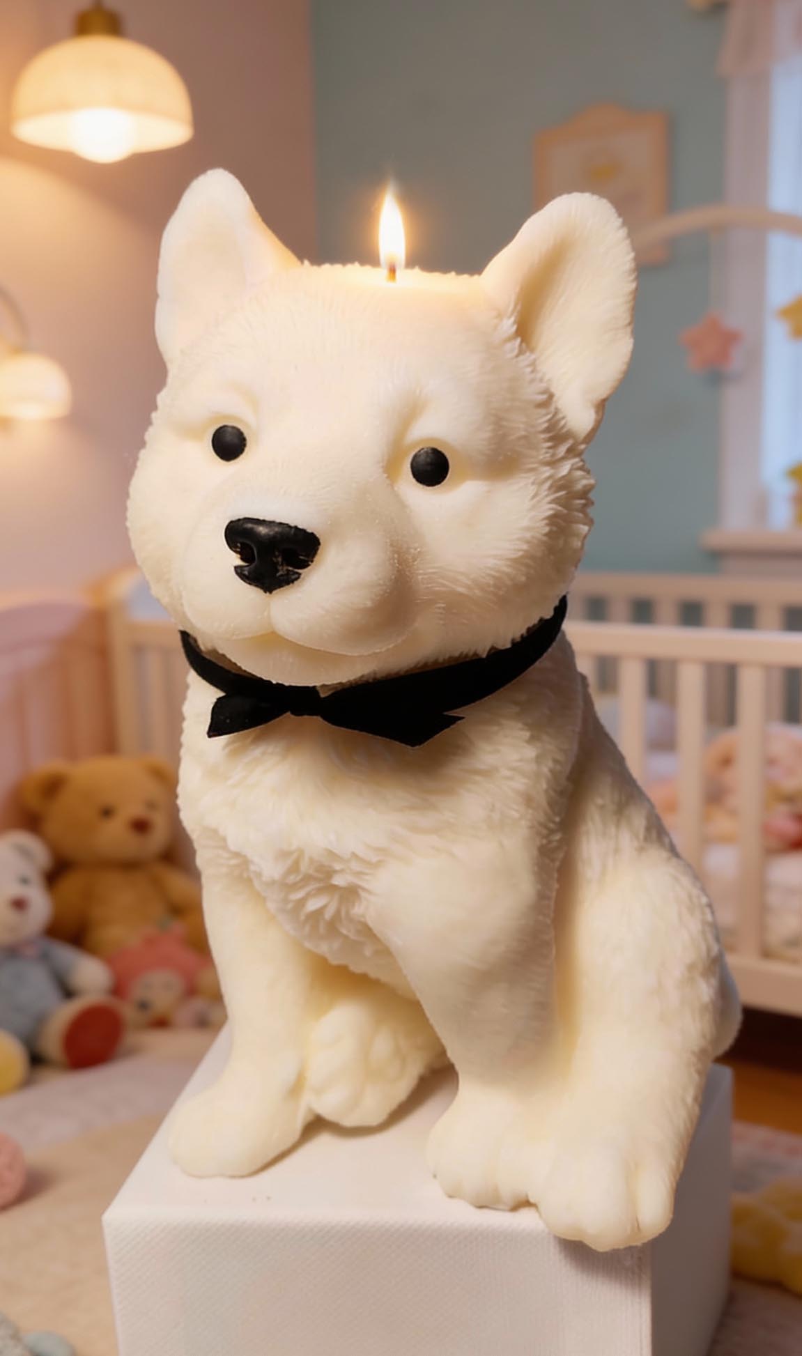Con una presencia elegante y una belleza inconfundible, nuestro cachorro de Husky siberiano es una vela de soja premium sin aroma, elaborada a mano con cera de soja 100% natural.